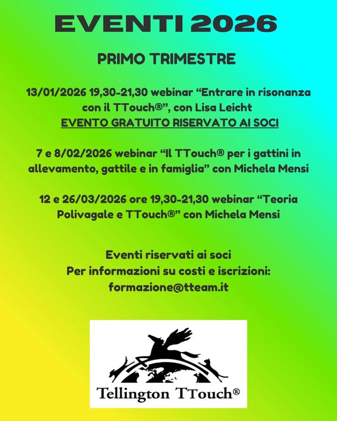 Gli eventi tenuti dai Practitioners del metodo Tellington® TTouch sono finalizzati a divulgare informazioni di base sul metodo e sulle tecniche che lo contraddistinguono.