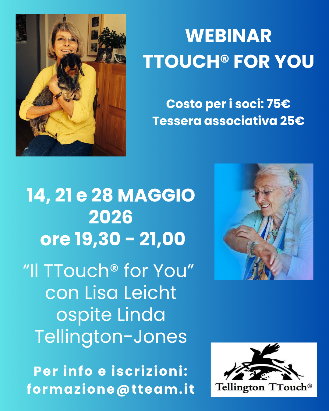 Per tutti i corsi promossi al di fuori dei canali ufficiali dell’ Associazione Tellington TTouch® Italia (sito e pagina FB), vi suggeriamo di contattarci per assicurarvi che siano tenuti da docenti qualificati, aggiornati e autorizzati a divulgare il metodo TTouch®.